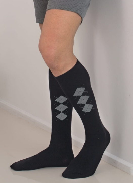 Podkolanówki uciskowe przeciwżylakowe z masującym podbiciem o stopniowanym ucisku, ze wzorem szkockiej kraty. Ucisk w kostce 18-22 mmHg - średnia kompresja. Podkolanówki dla kobiet i mężczyzn z dużą zawartością wysokiej jakości bawełny w składzie (70%). Atrakcyjne i wygodne w noszeniu, nie powodują ucisku w obrębie palców i pod kolanem, nie zsuwają się podczas chodzenia.