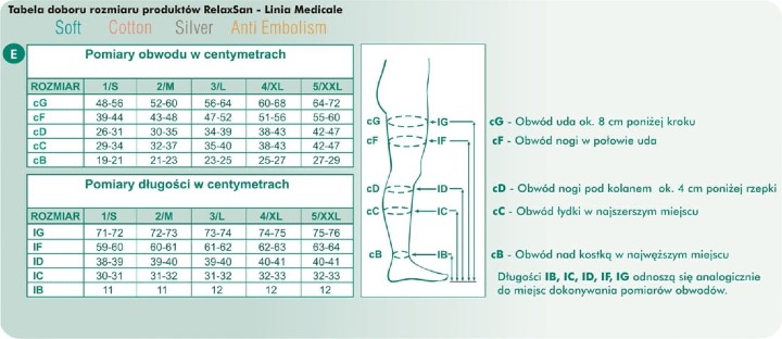Pończochy samonośne przeciwżylakowe, medyczne z mikrofibry o stopniowanym, mocnym ucisku. II Klasa Ucisku - ucisk w kostce 23-32 mmHg.